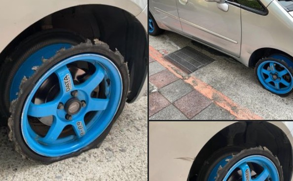 一名女網友昨日在「爆廢1公社」PO文表示,前幾天送貨到一半聽到「砰一聲」,以為底盤撞到,下車查看後覺得沒什麼問題,就繼續開上國道,結果到了下一站發現根本「爆胎」,連後方車主也嚇到:實在太命大。