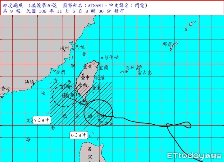根據中央氣象局資料顯示,閃電颱風目前在鵝鑾鼻東南方海面,向西北西轉西北移動,其暴風圈正逐漸進入巴士海峽及台灣東南部海面,對台東(含蘭嶼、綠島)、屏東、恆春半島、高雄及台南構成威脅。