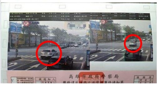 原PO在爆料公社PO出他的罰單,並稱闖紅燈應該「是以2張照片拍攝」,在車輛停止線前、後各拍1張才成立,但他被拍下的2張都是「全車已過停止線」。