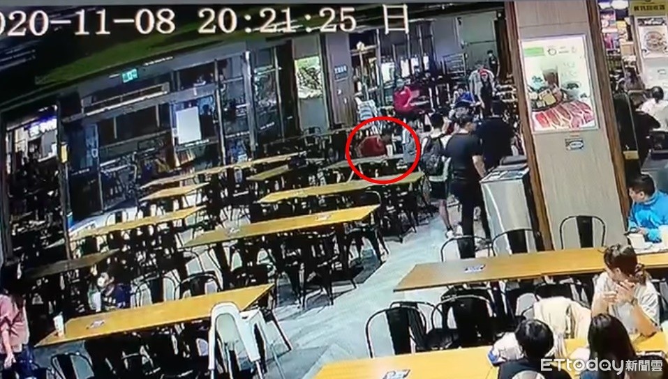 事發當下的監視器畫面曝光,只見當時賣場有不少消費正在座位區用餐、休息,但門外卻突然一陣騷動,而透過畫面可以看到,穿著紅色衣服的蔡男當時與穿著深色衣服的蘇男爆發激烈拉扯,最後因蔡男身材較為高壯,才成功將蘇男壓制,並等候警方到場。