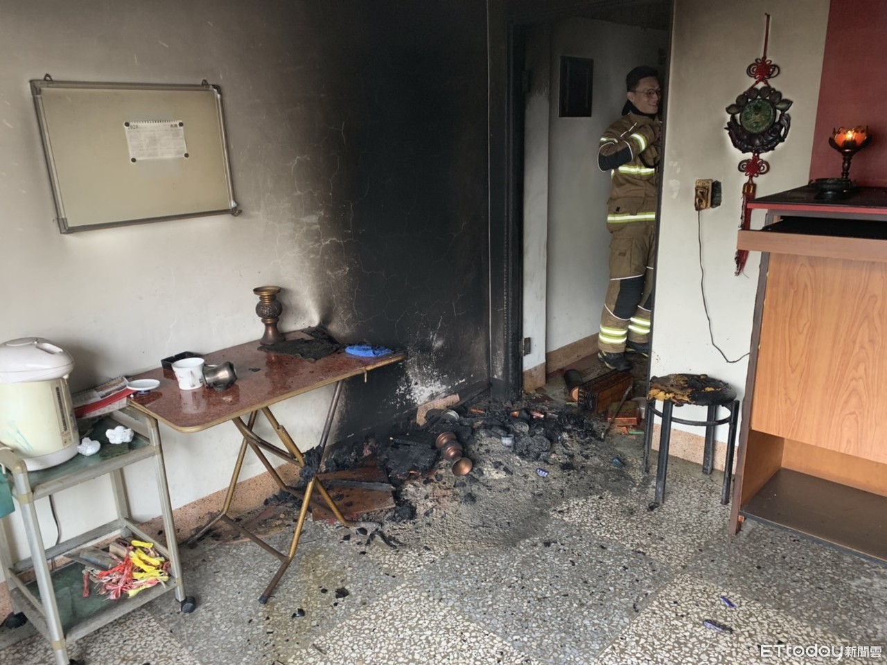 ▲台南市消防局呼籲民眾,神明廳平日要注意用電用火安全,以免發生火警釀成災情。(圖/記者林悅翻攝,下同)