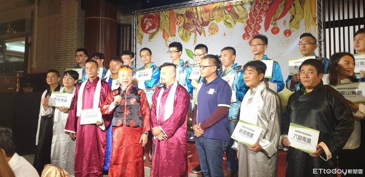 農民不僅會種植還很會玩樂!嘉義縣農會近年不僅繳出亮麗銷售成績,更積極以另類表現顛覆農民傳統保守形象,11日晚間青年農民聯誼會,選在嘉義縣長官邸辦理第三屆會長、副會長及常務監事交接典禮活動,交接典禮除了授證儀式,節目高潮由縣長翁章梁、立委陳明文,縣農會總幹事黃貞瑜,及山海區各農會總幹事及青農幹部等變裝民國風穿搭,走星光大道進場宛如時尚走秀,各分會會員現場也歡呼聲不斷。