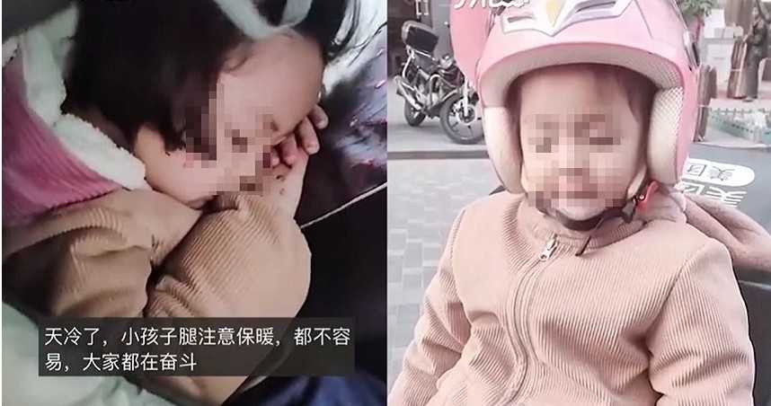 中國安徽一位單親媽媽帶著4歲女兒辛勤跑外送,天冷時,女兒就趴在機車上睡著,原來媽媽正和丈夫打離婚官司,擔心女兒在家沒人照顧,但又不能沒了收入,因此才帶著女兒一起跑外送,影片曝光後令網友相當感動。