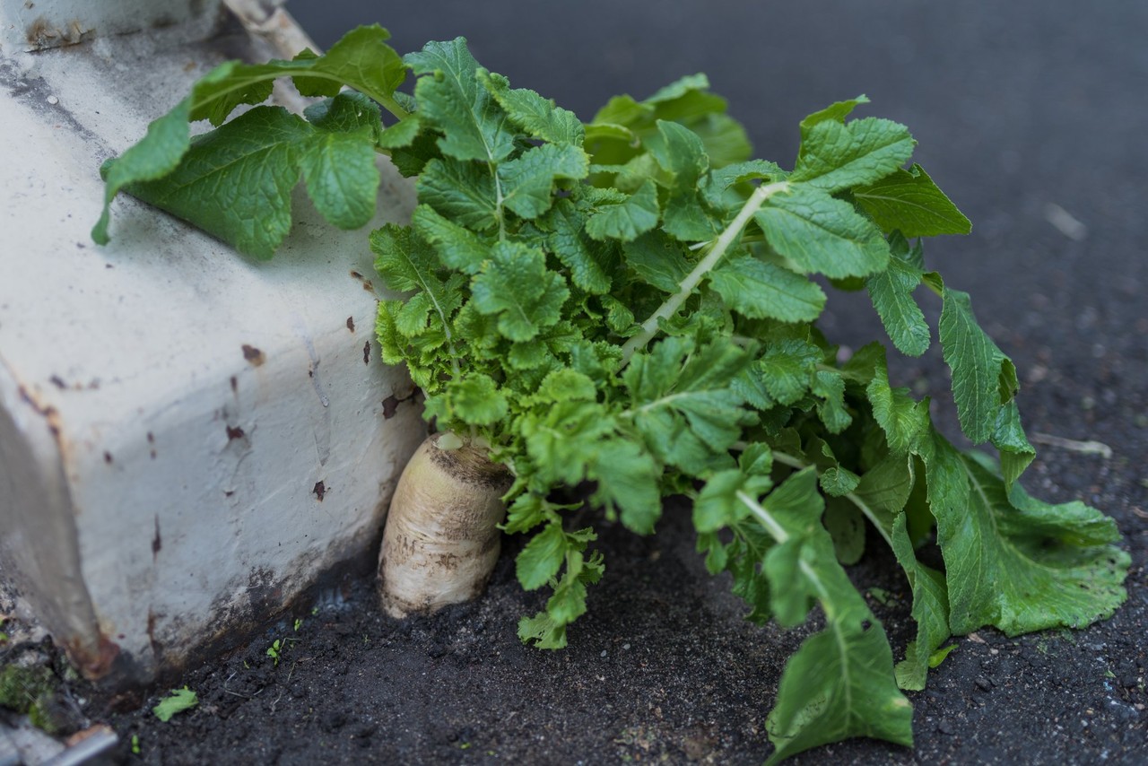 根據BuzzFeed News報導,推特上瘋傳大阪站天橋有一根「頑強蘿蔔」(ど根性大根),突破堅硬的瀝青混凝土,努力生長成直徑約4公分、長度約30公分,且擁有茂密綠葉的健康模樣,於7日上午有多家日媒報導了這根「頑強蘿蔔」奮力生存的姿態,吸引許多民眾慕名前往,只為了與它合照、摸摸它,一邊驚嘆著「真的長出來了!」、「為什麼可以長在這裡」。