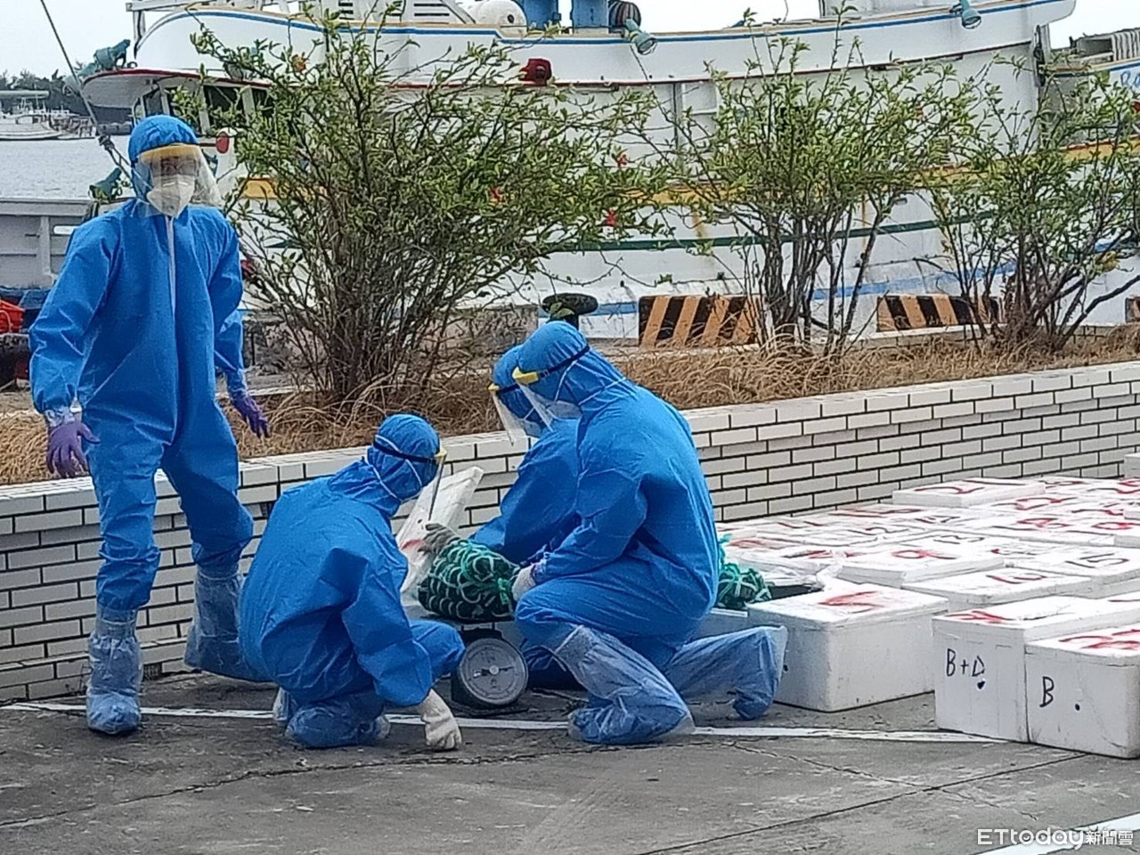 ▲海巡署偵防分署台南查緝隊等單位,在台南地檢署檢察官指揮下,查獲「昇」字號漁船,涉嫌走私價值800萬元大閘蟹及盧姓等5名船員。(圖/記者林悅翻攝,下同)