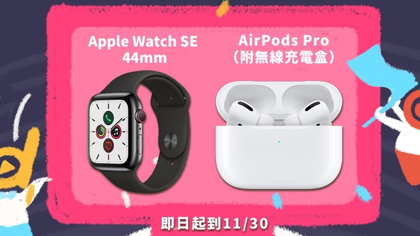 「AirPods Pro」內建主動式降噪模式,輕鬆讓人進入不被外界打擾的好聲音,軟軟的密合設耳塞設計戴整天也不累,隨附無線充電盒更是隨身電力不停歇。配上「Apple Watch SE」腕上清晰顯示通知,戶外活動更能掌握身體狀態。