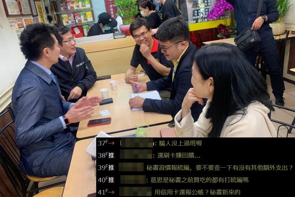 有網友將相關報導轉貼至PTT討論,質疑丁怡銘的秘書習慣報公帳,是否以前買什麼東西、吃喝也都會這樣做,「還刷卡賺回饋」、「秘書習慣報統編,要不要查一下有沒有其他額外支出?」、「意思是秘書之前買吃的都有打統編嗎?」、「重新定義自掏腰包」、「用信用卡還報公帳?秘書新來的?」、「這種私人帳報統編,祕書一定會問一下,怎麼可能不問」。