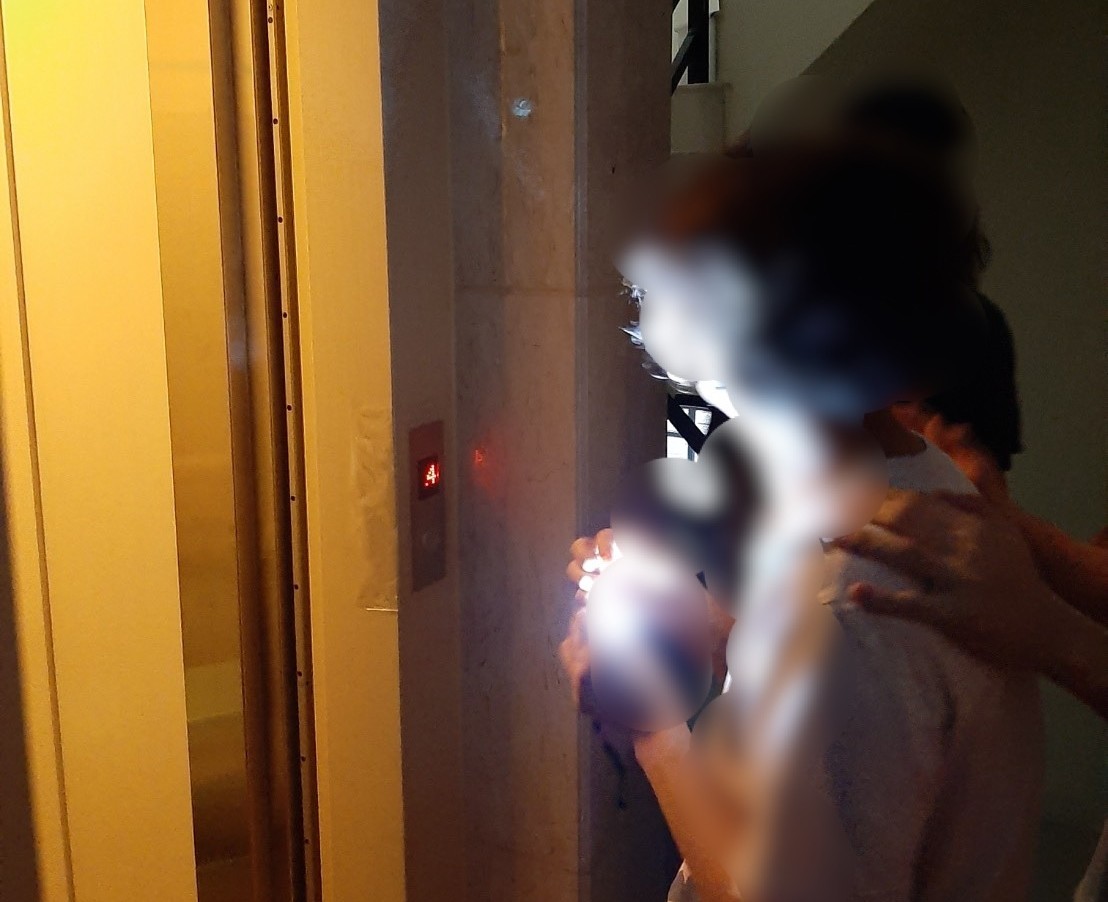 ▲婦人因停電被困在電梯中,脫困時並無大礙 。(圖/記者洪靖宜翻攝)