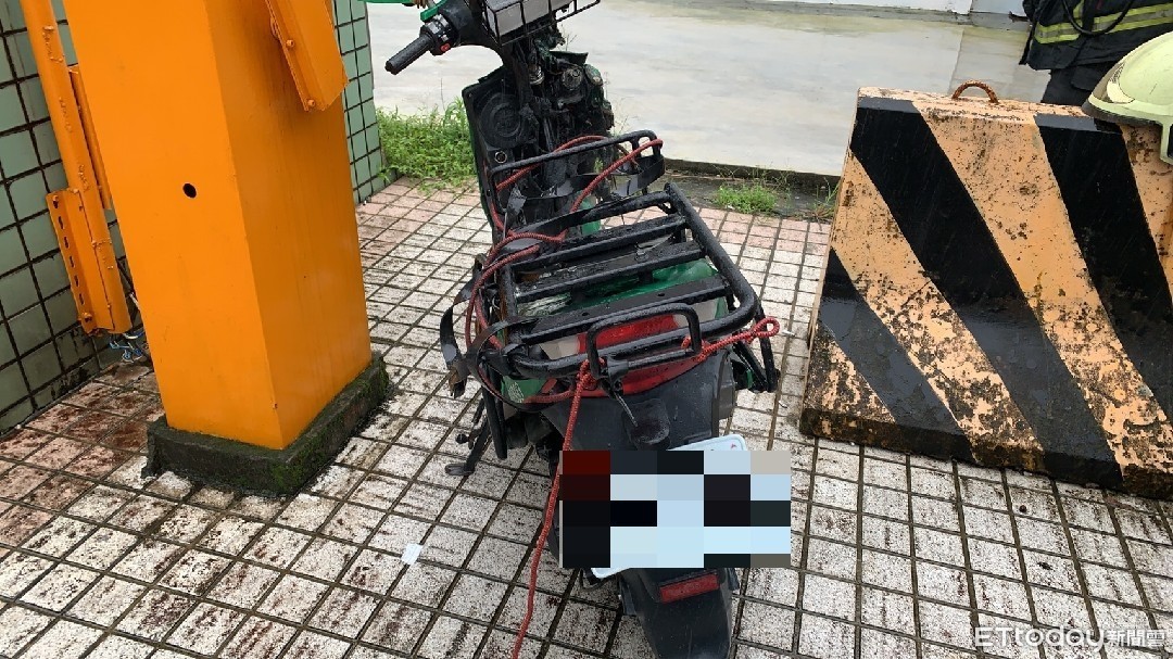 ▼宜蘭郵局地下室的郵務士市區送件專用的電動機車起火。(圖/記者游芳男翻攝,下同)