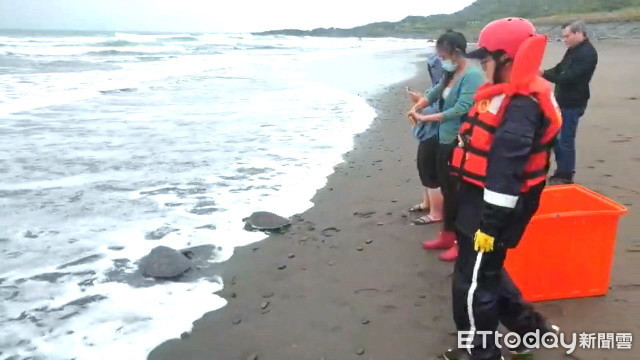 13日上午11時03分,海巡署北部分署第一岸巡隊大里安檢所石城執檢站接獲民眾通報說,光榮定置漁網區誤闖入保育類海龜2隻,第一岸巡隊石城執檢站人員,除立即通報宜蘭農業處及海洋大學相關人員到場協助辨識,確認海龜品種是綠蠵龜,2隻背甲均長約為41公分、寬38公分,無明顯外傷,經宜蘭農業處人員評估後,由海巡人員於蜜月灣實施野放。