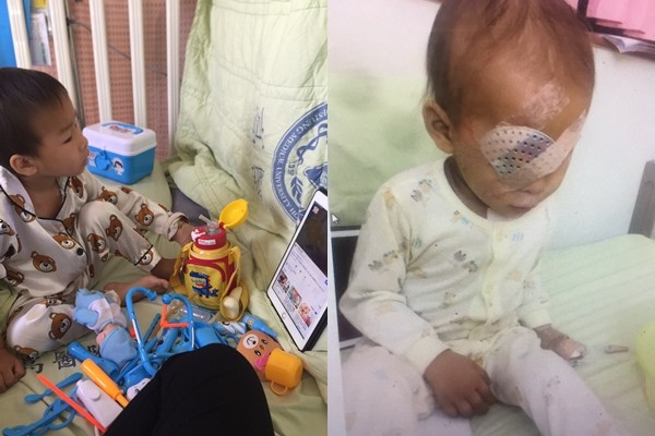年僅3歲的范明守在4個月大時,就被發現兩眼都有腫瘤,當時左眼立即摘除裝義眼,右眼腫瘤則持續做各式化療與放療控制,高雄醫學大學附設中和紀念醫院小兒科部主治醫師廖優美表示,但目前右眼已經多次局部復發,要不斷到高醫住院化療。