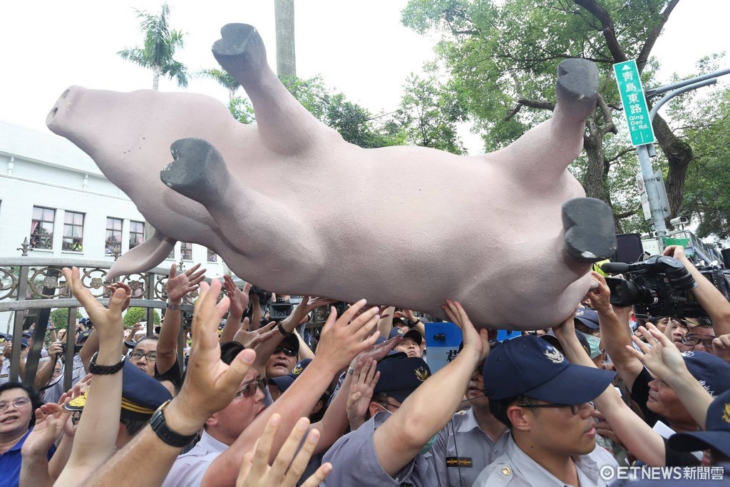 ▲國民黨發動豬農抗議美豬進口。(圖/記者黃克翔攝)