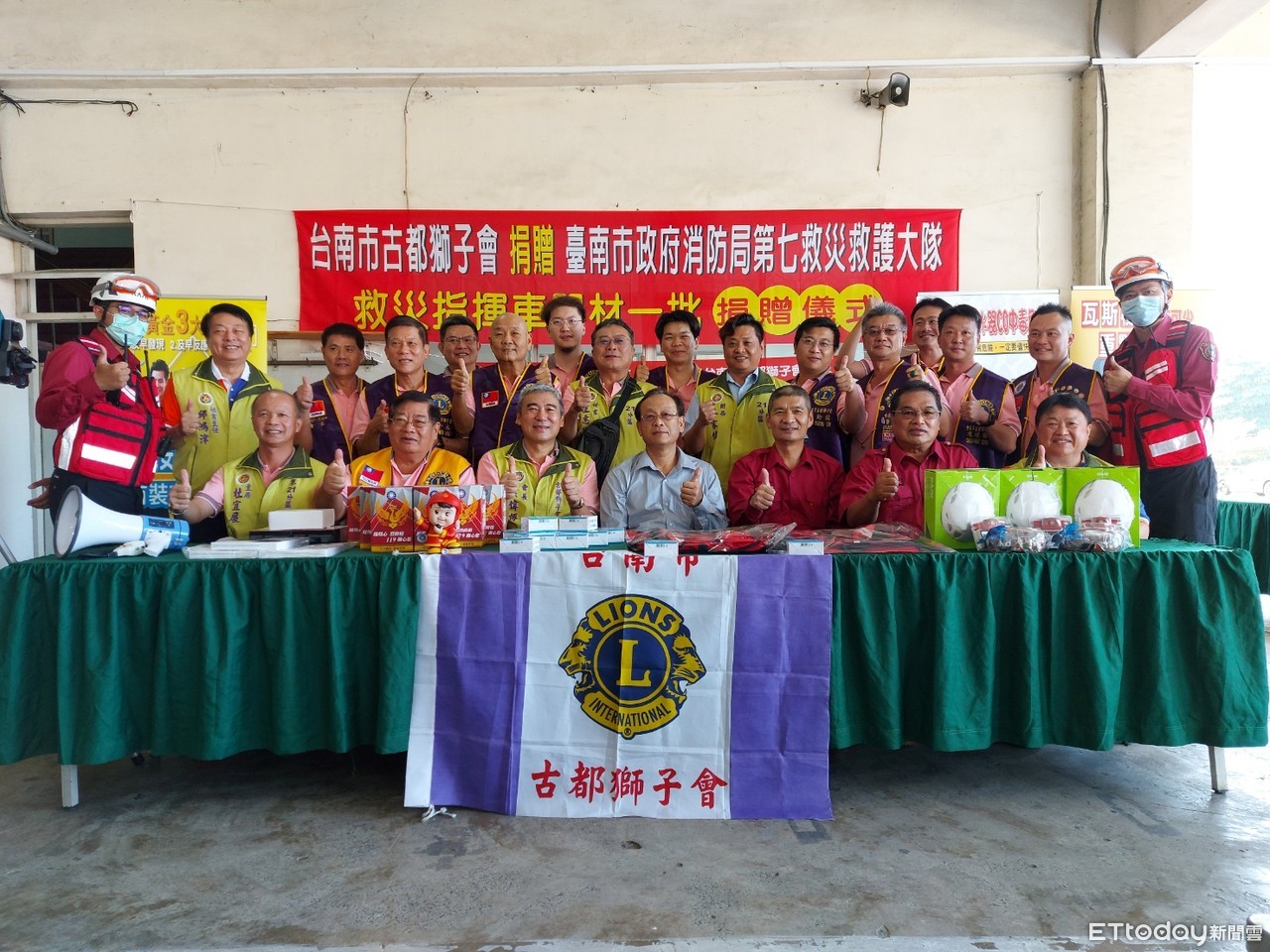 台南市古都獅子會秉持「服務社會,造福人群」的理念,熱心公益回饋地方社會,深深體認消防局同仁保障台南市民生命財產安全的辛苦付出,為了能讓救災指揮同仁裝備器材更為完善,,由義消第七大隊羅德春大隊長,同時也是獅友身份,致力促成第21分區及仁愛、北門、永恆、第一、春暉、郡王及如意獅子會等獅友們的慷慨解囊,捐贈第七大隊救災指揮車上之救災裝備器材,總價15萬元,包括救災用LED照明燈組、救災用平板電腦、救災用頭盔(含頭燈及護目鏡)、救災幕僚反光背心等裝備,大大提升救災指揮車之功能,也讓消防人員在救災現場能獲得更加安全的救災環境,並提升救災指揮之功效。
