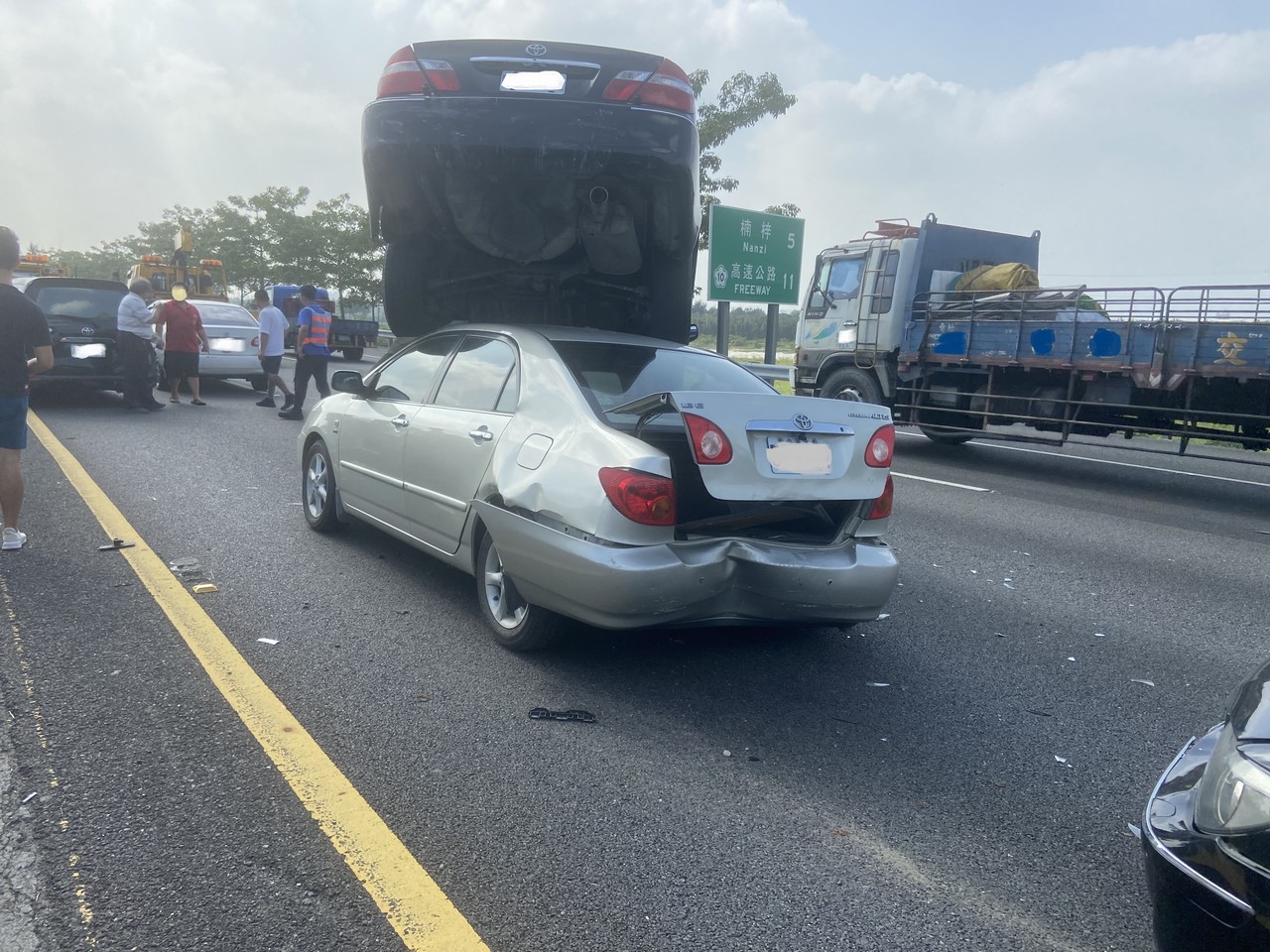 ▲國道一號發生一起五車追撞事故,所幸無人受傷。(圖/記者黃子倩翻攝)