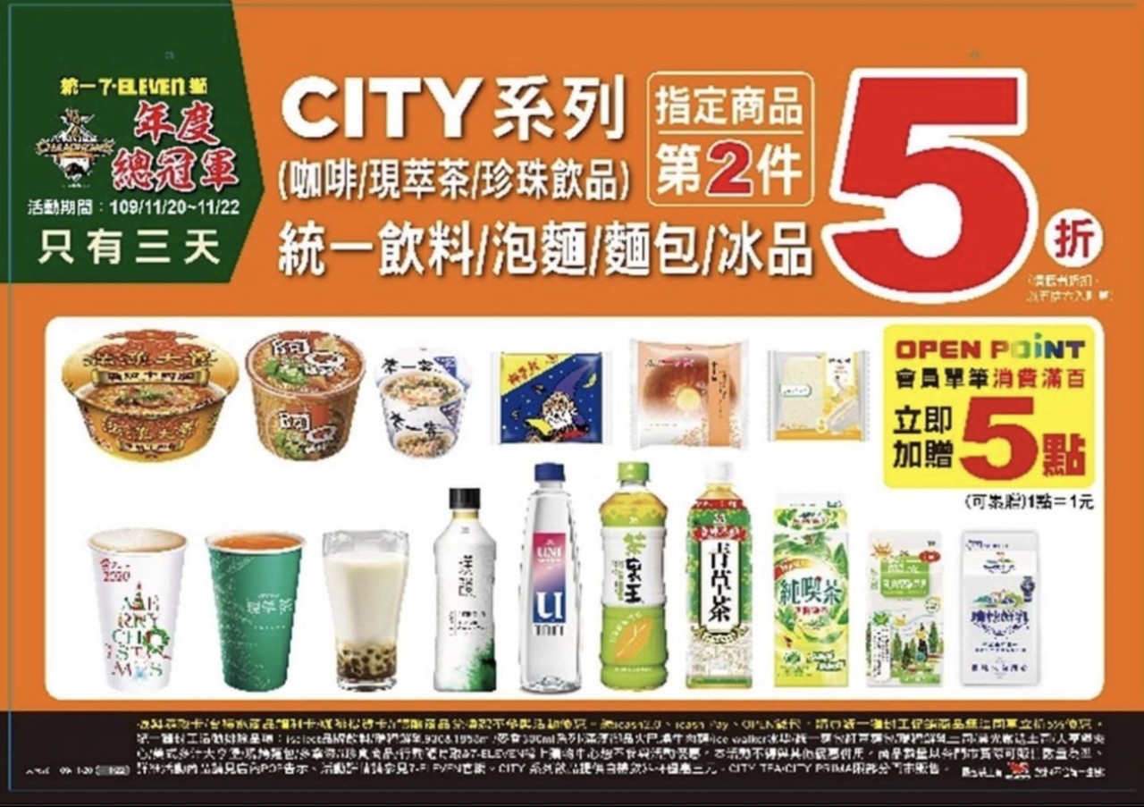為慶祝統一獅睽違7年再次奪冠,網友期待已久的超商優惠終於要來了,網上流傳一張限時3天小7指定商品第二件五折優惠,對此,超商業者則回應,「官方尚未公告最新消息,敬請期待」並透露優惠就快登場了。