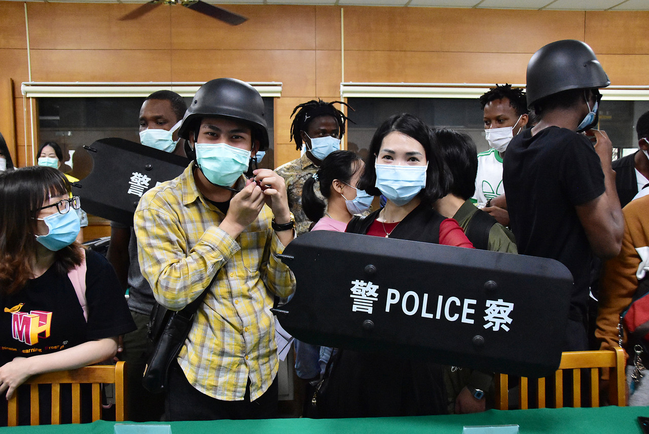 明道大學境外師生上百人今(18)日到彰化北斗警分局參訪,警方為師生安排一場犯罪預防宣導、警用裝備鑑識設備展示及初階防身術指導等,藉此強化學生自我防衛能力,並深入認識台灣警察工作內容,一連串的活動讓外籍師生直呼台灣警察真是專業、友善、值得信賴,「台灣的警察好棒」、「我也要當警察」。