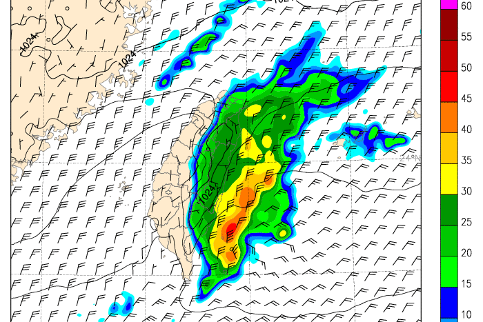 預計鋒面主體在20日會通過琉球海域,尾端有機會掠過台灣北部外海,不過這波東北風不強,帶來的水氣也不多,北部、東半部轉為陰有短暫雨,降雨侷限在北海岸、山區等地形上;21日慢慢轉回偏東風的環境,很快地在22日下半天又會有一波更強冷空氣南下,又會有一波變天,北東逐漸變回秋冬的天氣型態。