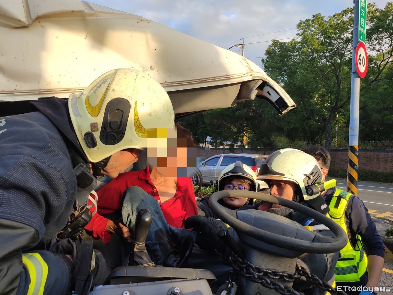 ▲▼台中一輛瓦斯車追撞混凝土車,駕駛一度卡車內。(圖/記者李忠憲翻攝,下同)