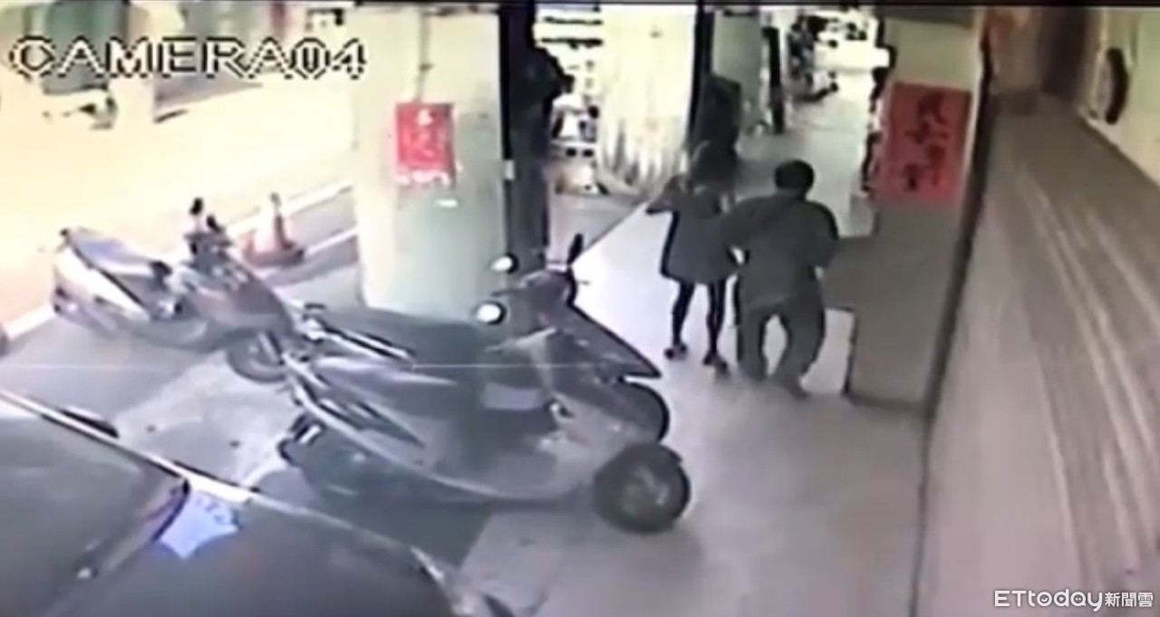 ▼周男在騎樓處與劉女發生爭執,竟在光天化日下揮刀刺胸,行凶後血刀還直接丟地,隨後轉身離去。(圖/記者沈繼昌翻攝)