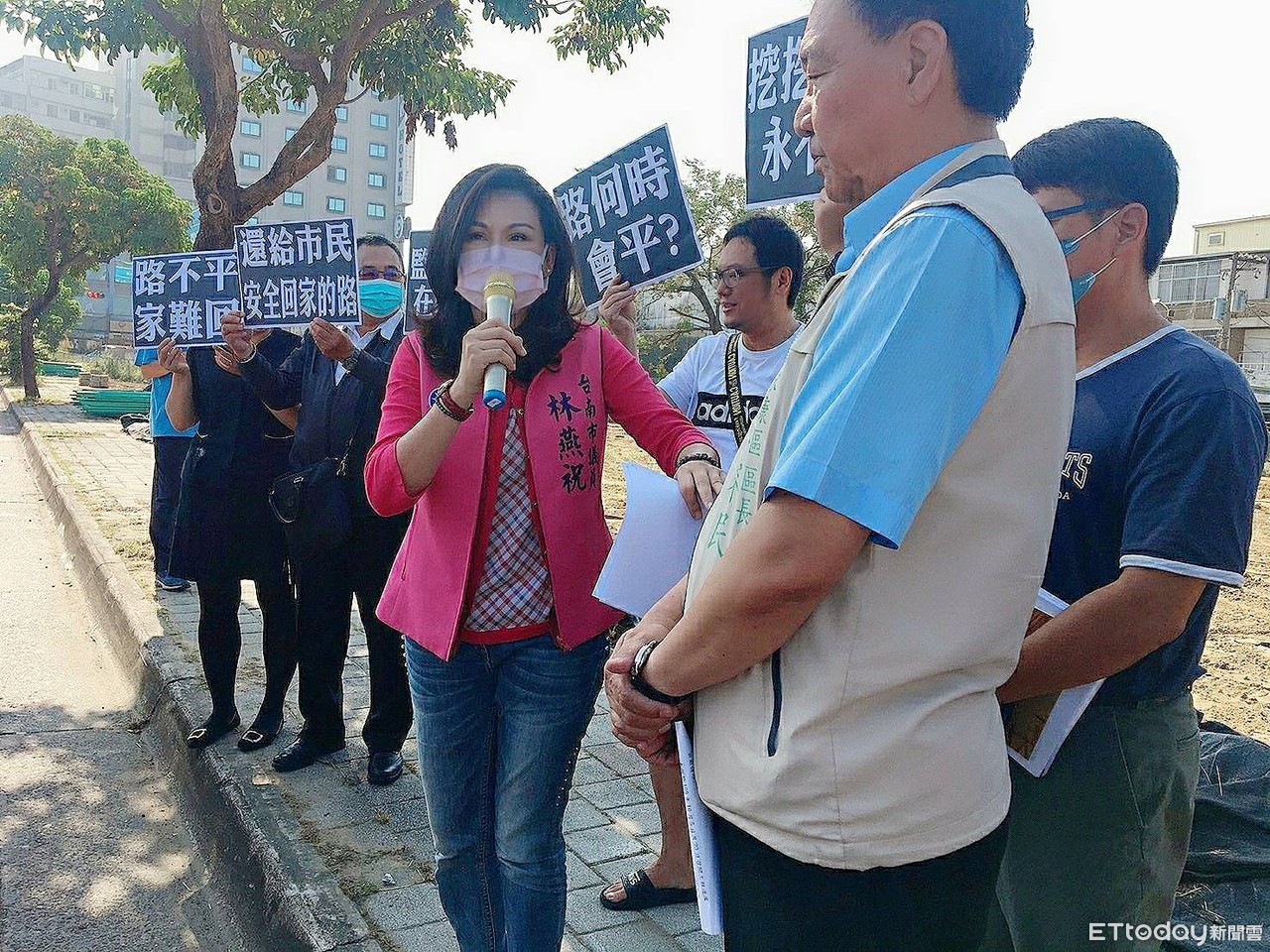 陳情民眾原本要到市長室抗議,惟林燕祝偕永康區長張睿民、水利局科長現場會勘尋求解決,林燕祝表示,東橋二街柴頭港溪D幹線排水改善工程,早在去年6月就開工,但至今1年多東橋七路至東橋二街185公尺的道路被「擋」了1年半,東橋七路與中山南路口附近是東橋、大橋地區的交通要道,上下班交通非常繁忙,但工程一做一年半,民眾上下班、上下學塞在路中,大家抱怨連連,忍到都上臉書舉發,市府難道都不知道,都無感嗎?
