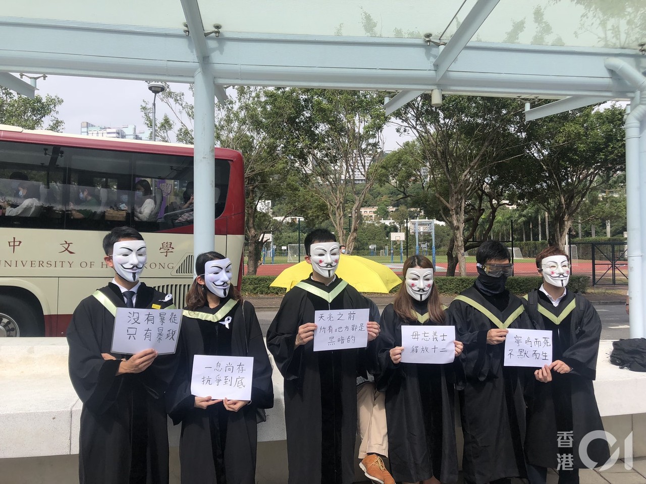 ▲香港中文大學有學生發起今日舉行「暴大2020我們的畢業禮」,以遊行默哀方式,表達關注12港人被扣鹽田事件。(圖/香港01授權提供,請勿隨意翻攝取用,下同)