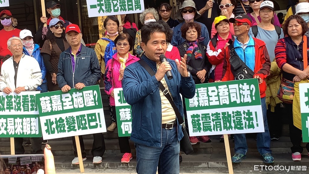 ▲屏東議員王景山去年在北檢前公開質疑蘇嘉全「喬司法」被起訴涉嫌誹謗。(資料照/記者劉昌松攝)