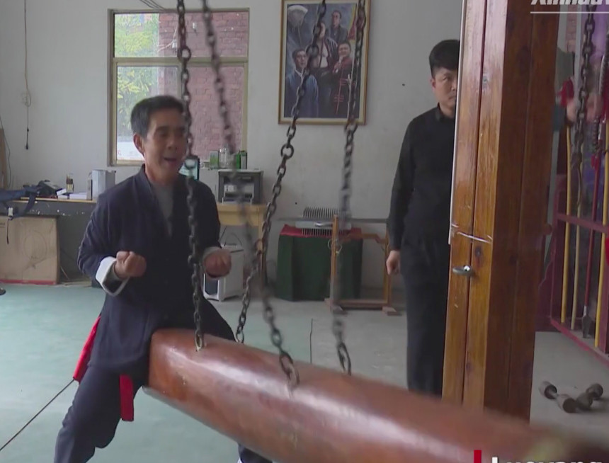 65歲的王留太是軍屯武術館館長,他在鏡頭前不吝嗇的大秀擁有300年歷史的鐵襠功,這武功還曾被評為洛陽武術非物質文化遺產。只見他且面對長約2公尺、直徑20公分、重達50公斤的大木樁的撞擊,絲毫不為所動,似乎練鐵襠功已有50多年的他,已達到「出神入化」的境界。