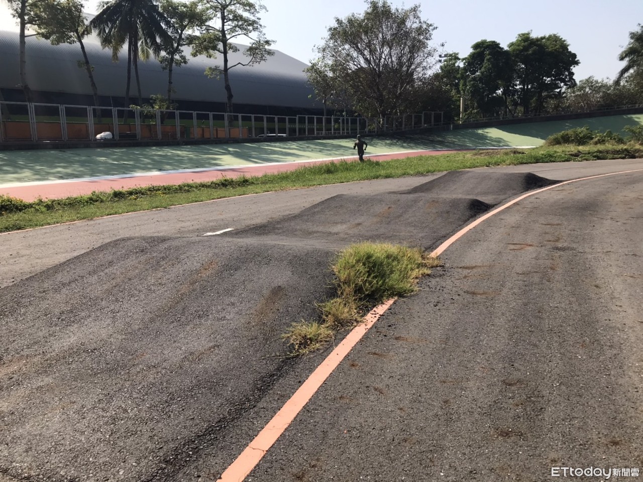 ▲台南市立自由車場館興建至今已滿50年,但歷經50年頻繁使用,車道都已翹曲嚴重變形隆起。(圖/記者林悅翻攝)
