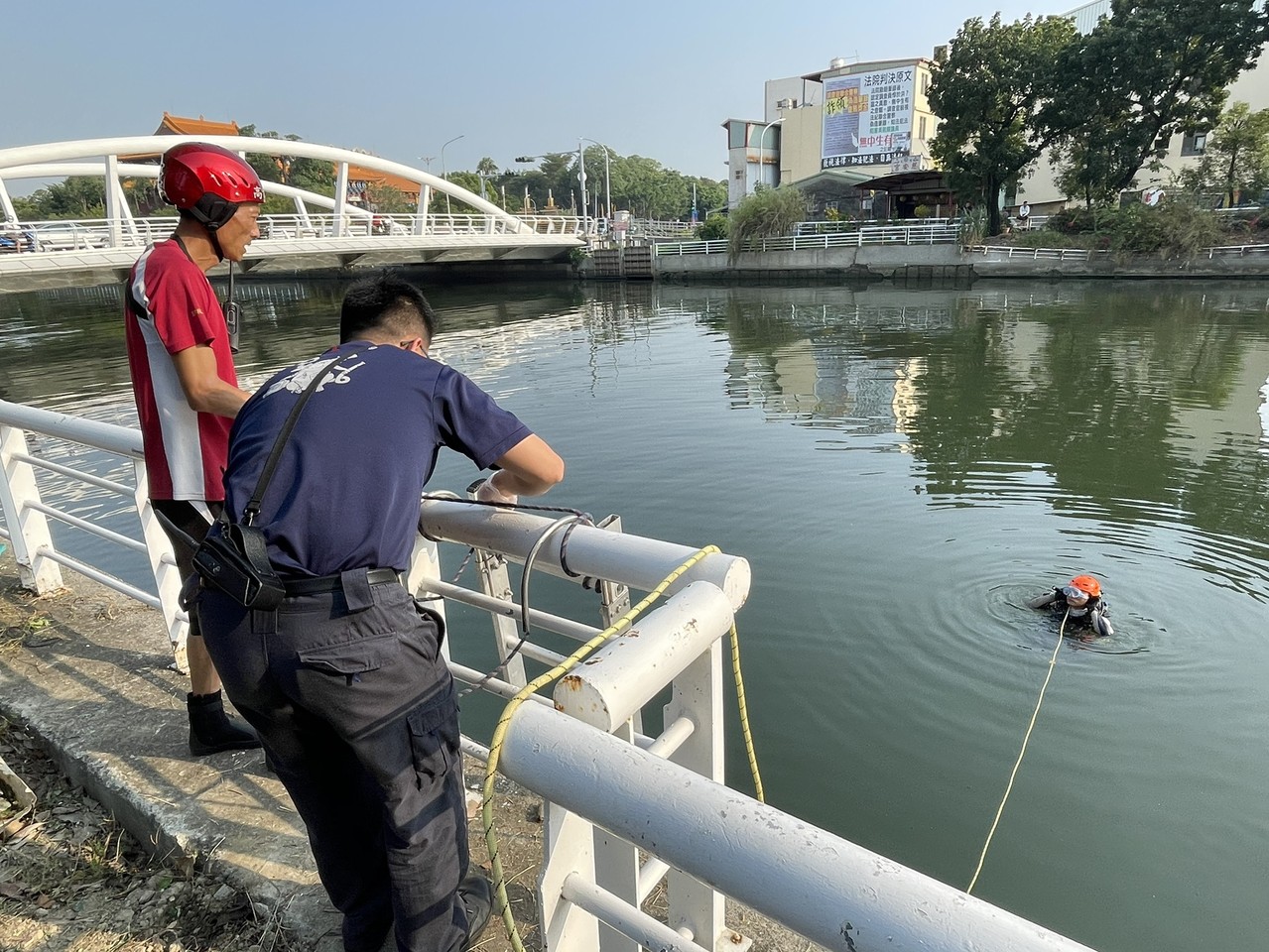 ▲前鎮區一名女子落水,消防隊搜尋中 。(圖/記者吳世龍攝)