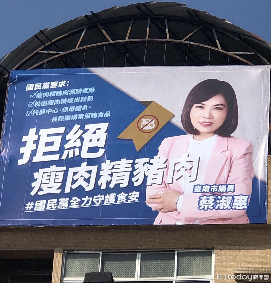 反民進黨政府開放瘦肉精美豬進口,國民黨號召全民11月22日中午一起穿黑衣上凱道,表達堅決反對立場,而這股民怨怒火已蔓延到全台,在台南除國民黨台南市黨部率先於新營和中西區街頭,掛上兩幅巨大看板外,國民黨籍議員近日陸續於服務處或街頭,設置反對瘦肉精美豬進口的看板,強烈表達黨的立場與訴求。