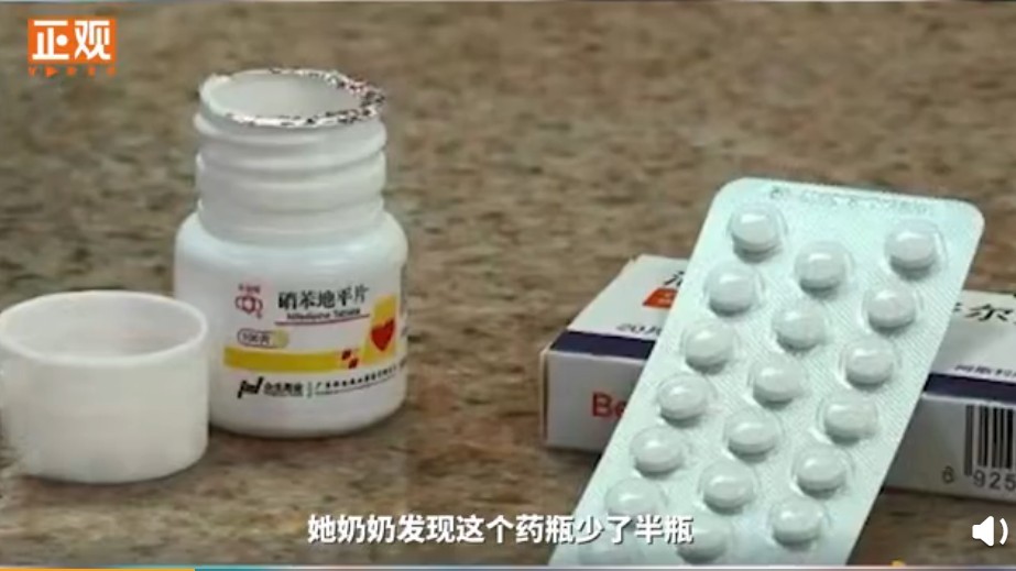 ▲女童把奶奶的藥當成糖吃。(圖/翻攝自微博/正觀視頻)
