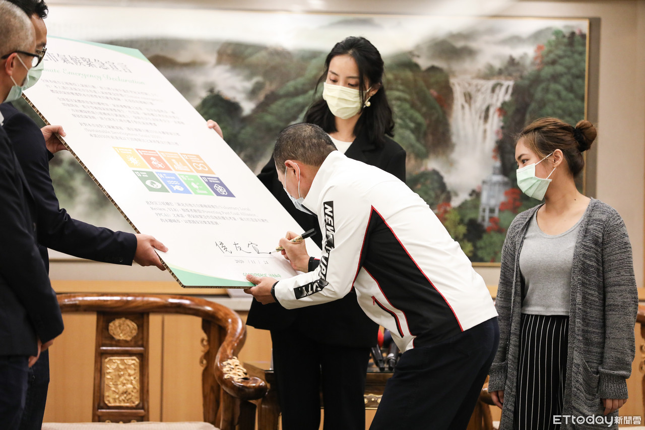 侯友宜說,除了成立氣候變遷以及能源對策委員會成立之外,他宣誓成為與國際共同面對氣候變遷局勢,對永續城市治理在國際接軌,只有公布報告、接受檢驗,才有鞭策動力。