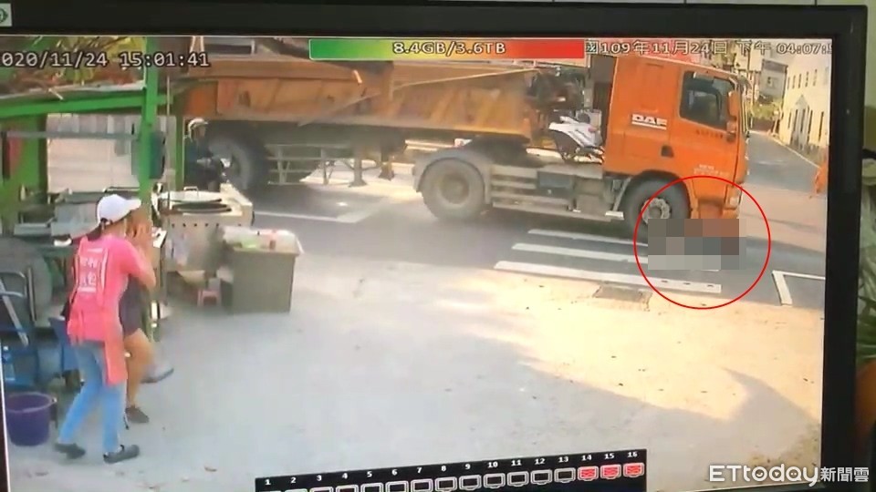 根據監視器畫面,當時聯結車張姓司機(37歲)與林姓單車騎士(60歲)皆於草溪路停等紅燈,孰料,號誌轉為綠燈後,林男打算左轉,直接從聯結車前方騎過,而張男疑視線死角未注意,當場輾過林男,而一旁民眾目擊驚悚瞬間,更是嚇到跳起來。