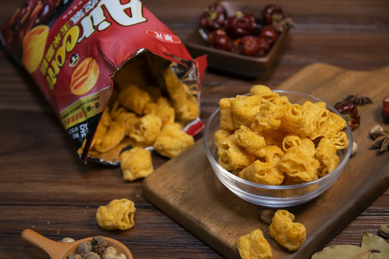 ▲全聯上架超過10款「火鍋跨界零嘴」,包括華元聯名這一鍋推出的「御膳麻辣鍋風味空氣玉米脆餅」等。(圖/全聯提供)