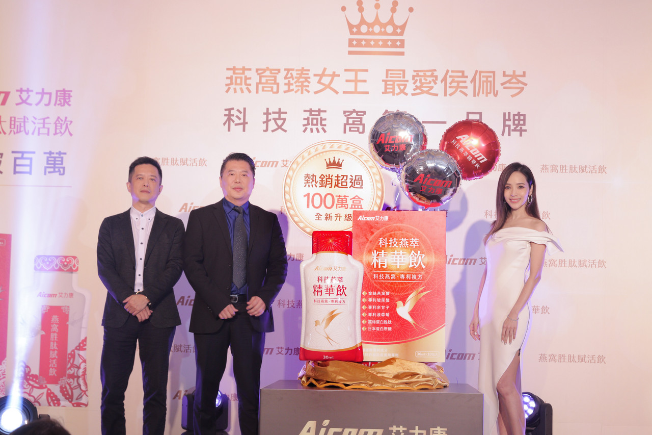 艾康明生醫旗下科技保健品牌「Aicom艾力康」於11月24日在知名五星酒店文華東方,舉辦Aicom科技燕窩熱銷百萬慶功暨新品發佈記者會,邀請有『完售女王』之稱的代言人侯佩岑,以及參與研發的專家教授醫師等嘉賓蒞臨現場一同共襄盛舉。現場搬出巨型燕窩飲新品氣勢登場,不但慶祝科技燕窩締造百萬銷售佳績並榮獲SNQ國家品質標章科技美容飲第一品牌的殊榮,今日更震撼推出擁有10項專利成分的『科技燕萃精華飲』,是以備受好評的科技燕窩為基底再升級的黃金比例美顏配方,希望帶給消費者更好的體驗。