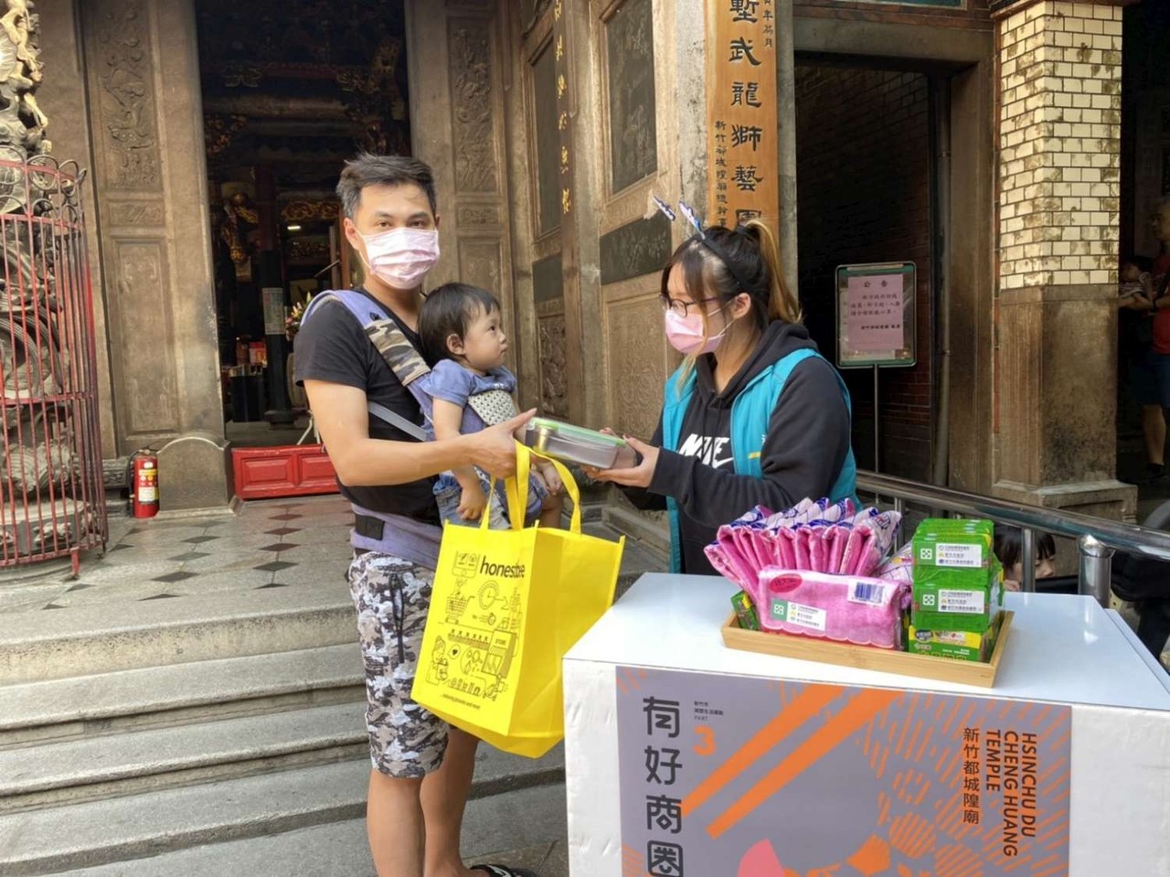 環保局長江盛任表示,城隍廟商圈為新竹市代表性商圈,本次成功轉型為環保商圈,要特別感謝所有攤商出錢出力挺環保。環保局針對油煙量較大的攤商補助設置靜電處理機,以降低空氣污染,在商圈內設置1台「環保袋自動租借機」,提供「投幣式、袋分尺寸」服務,10元押金租借1只購物袋。