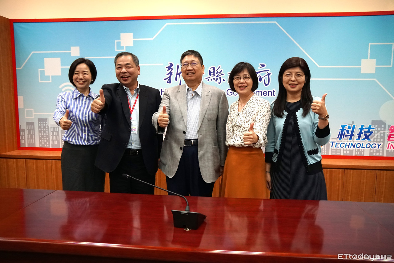 ▲新竹縣府公布新一波人事名單,(右起)新任文化局長李安妤、秘書長陳季媛、縣長楊文科、副縣長陳見賢、新任民政處長邱靖雅。(圖/新竹縣府提供,下同)