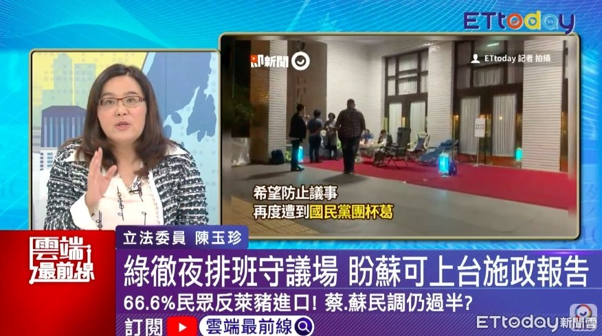 政府明年元旦起將開放萊豬進口,行政院26日則宣布赴美查廠、新增貨號、逐批查驗、清楚標示、嚴格稽查等5項機制。對此,國民黨立委陳玉珍在ETtoday《雲端最前線》節目中直言,政府都沒有回答問題的核心,講這些好聽的話都在欺騙百姓,「沒辦法消除人民心中疑慮!」
