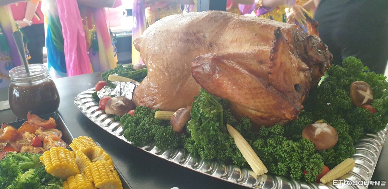 ▲華山基金會及愛心業者準備烤火雞供長者品嘗。(圖/記者翁伊森攝)