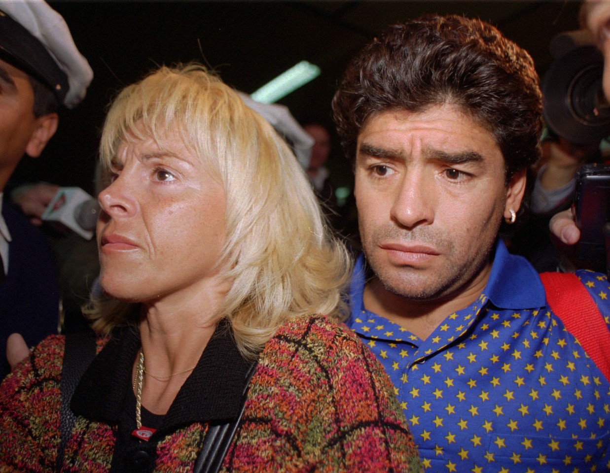 ▲1996年,馬拉度納跟髮妻克勞蒂亞在布宜諾斯艾利斯機場的留影。(圖/達志影像/美聯社)