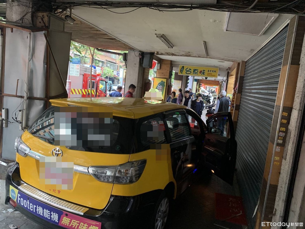 ▲北市木柵計程車衝上騎樓。(圖/記者黃彥傑翻攝)