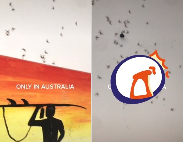 澳洲TikTok用戶@jordiistaheyeff觀察到,家中某一幅畫背後不斷竄出大量的「長腳小黑點」,好奇掀開一探究竟,才發現一隻巨大的獵人蛛(huntsman spider)帶著孩子藏在這裡。她將影片分享出去,並打趣表示,這景象「只有在澳洲才看得到」。