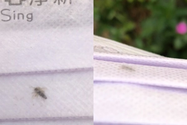 有網友在《爆料公社》貼文,文字指「臺灣製口罩這樣做的?還有蟲被縫在口罩裡?真的有在防疫哦」,「高職生放學拿全新的口罩想上公車,發現有蟲被縫在口罩裡」,影片中可見一隻蟲一動也不動的被縫在口罩裡面。由於口罩上面印著淨新,衛生局27日也立即到製造廠現場,觀察環境天花板及地面平滑清潔,門窗緊閉無漏洞,符合防鼠、防蟲及防塵規範,環境衛生及作業流程符合作業規範。