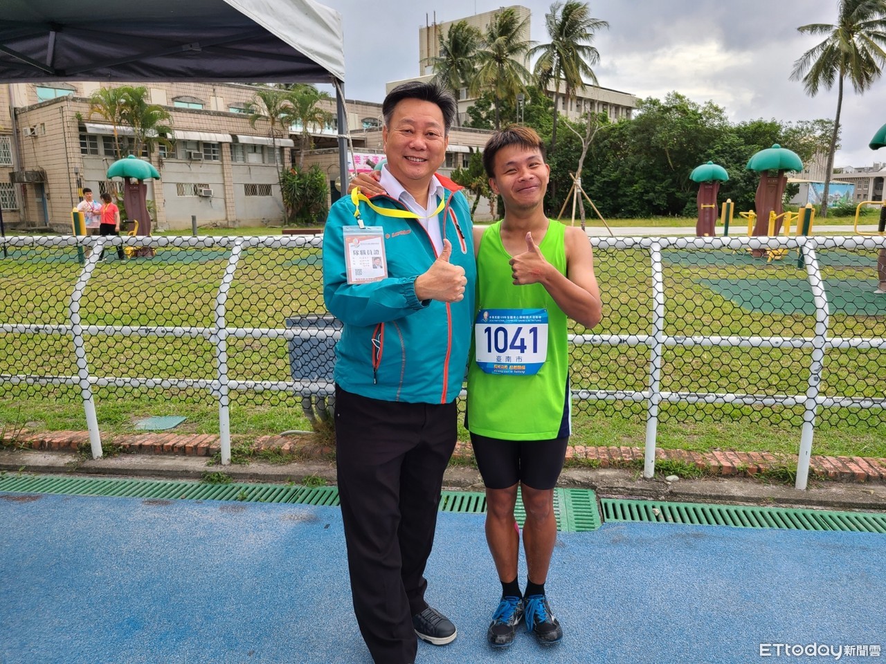 ▲全國身心障礙運動會 台南市田徑首日破5項大會紀錄,台南市教育局長鄭新輝在賽事現場鼓勵選手及教練,並轉達黃偉哲市長的祝福,勉勵選手努力超越自我、追求最佳表現。(圖/記者林悅翻攝,下同)