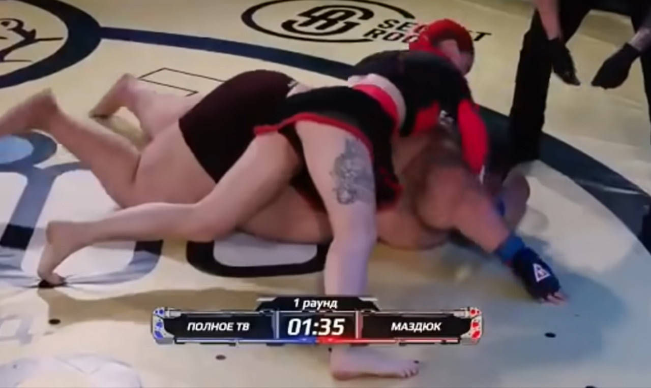 在格鬥場上體重不是問題?俄羅斯日前一場綜合格鬥(MMA)比賽,出現一場240公斤巨無霸大漢和62公斤精壯悍女的對決,女悍將瑪德齊克(Darina Madziuk)竟然在82秒內翻轉局勢,迅速將巨漢齊斯捷科夫(Grigory Czystjakov)打趴在地,在第一回合就取勝。