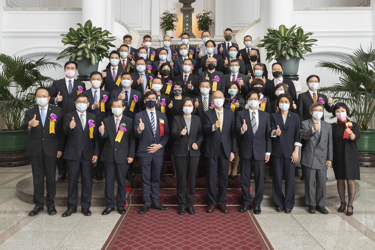 ▲總統蔡英文接見「第22屆國家建築金質獎」及「第17屆國家品牌玉山獎」得獎代表,一舉橫掃6大國家玉山獎的東森集團總裁王令麟也入府與總統會面。(圖/總統府提供)