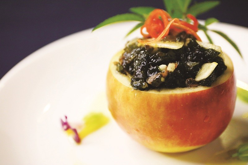 ▲雨來菇用紫蘇梅、薑絲與蘋果片一起醃漬,再加上苦茶油,變成在地風味沙拉料理.。(圖/花蓮區農業改良場提供,下同)