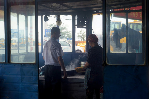 車子走上正道之後,阿合買提大哥把車停在加油站。觀察他加油的經過才知道,在大陸目前還沒有設置給機車類交通工具專用的加油機,加油前必須先拿一個大茶壺去裝油,然後再回來自己加進車子來完成加油。