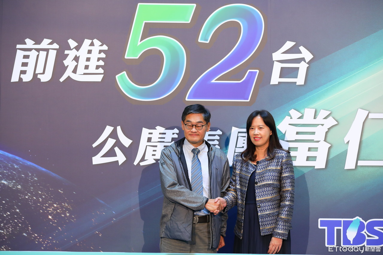 ▲公廣集團為了爭取CH52,高調辦理說明會,由華視總經理莊豐嘉(左)、公視代理總經理徐秋華共同出面說明公廣集團與華視將聯手合作搶進中天撤照後釋出的52台頻道。(圖/記者湯興漢攝)