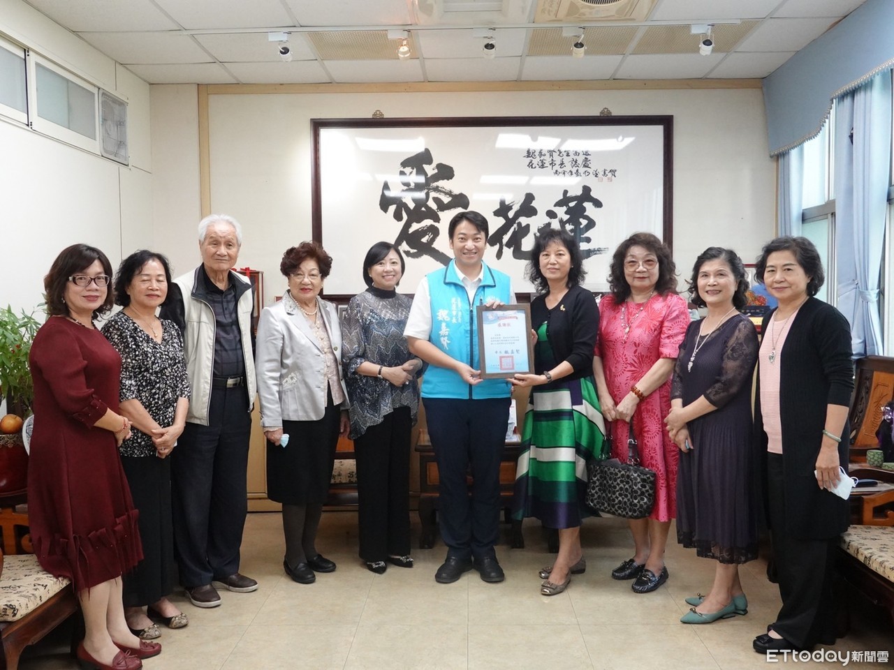 市公所舉行捐贈儀式,溫情姊妹會的8名成員來到花蓮市公所捐贈,由市長魏嘉賢代表接受,並贈予感謝狀。